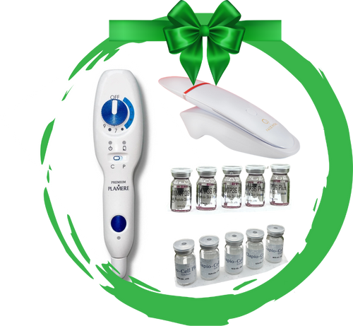 Indulge in the Leaf Fusion Plasma tool alongside our latest multi peptide serum. Experience the height of luxury with the Leaf Fusion Plasma tool and enhance your skincare routine with our powerful multi peptide serum. With this dynamic duo, you'll see real results and achieve the perfect balance of beauty and innovation.